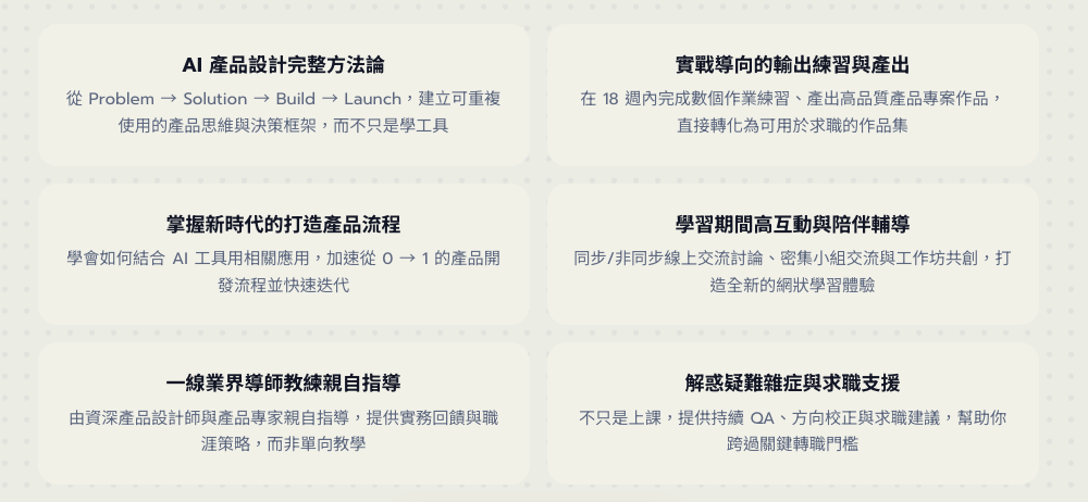 完整 18 週 幫助你成為 「AI x 產品設計獨角獸人才」