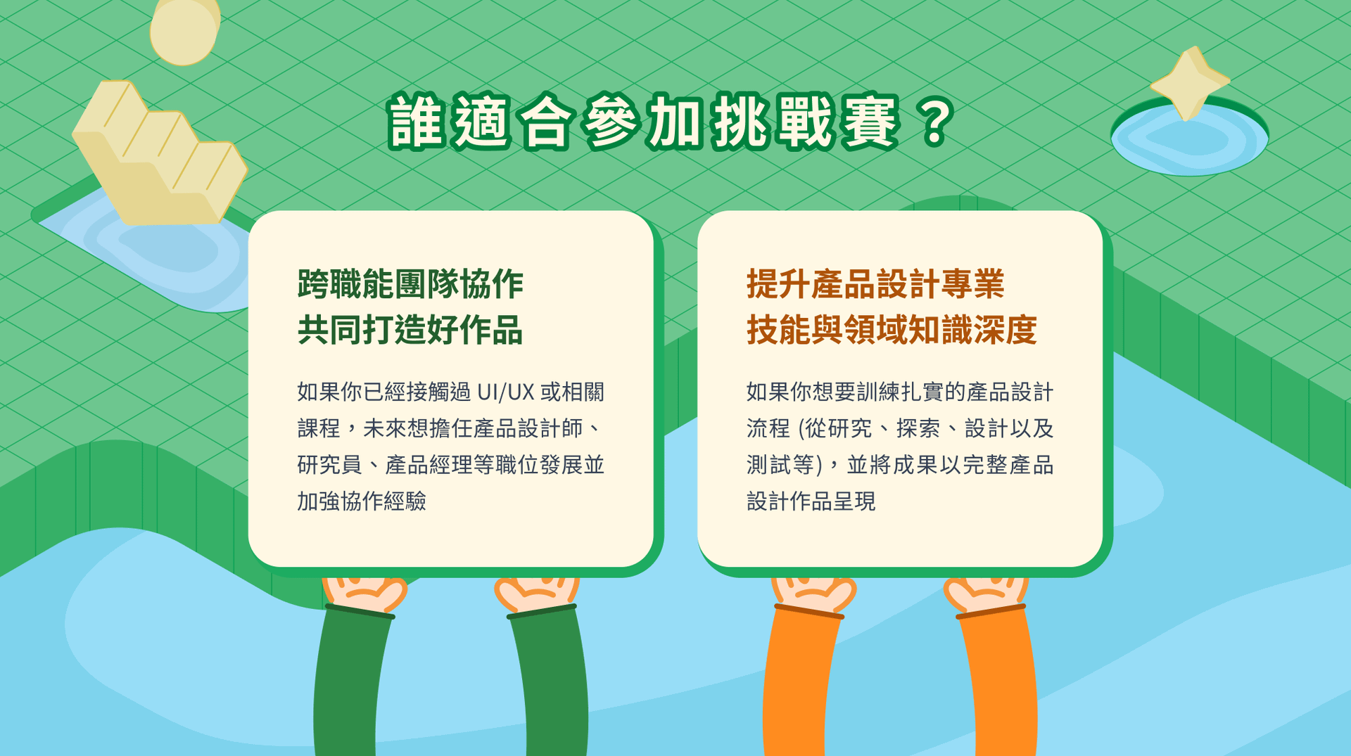 歡迎前往「第二屆產品設計挑戰賽」的主頁,查看更多評分標準、主題講座、評審、助教…等等的詳細介紹!