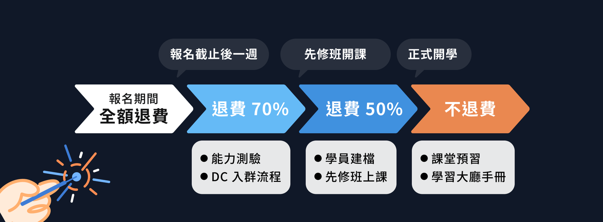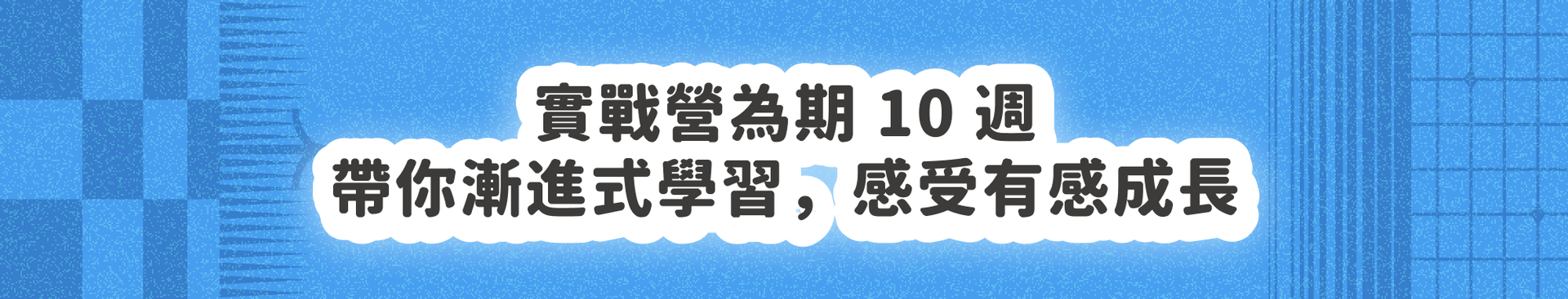 - 全程陪伴:這 10 週裡,你將會與同學、講師、助教、小幫手們一起解鎖與吸收每週豐富且扎實的學習計畫,讓你在學習的路上不再遇到周公、遇到問題也不再孤立無援。