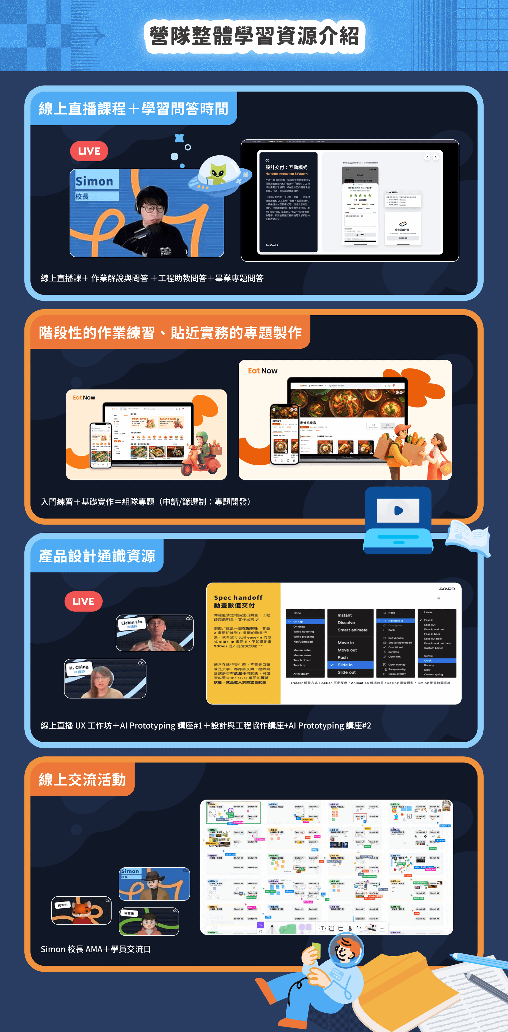 - UI/UX 的流程跟 AI 工具會如何做整合?AI 又會如何實踐到實戰營的作業與畢業專案當中?